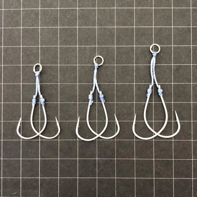 JLT-46 JIGEN LONG TWIN – Long type twin assist that is easy to match with semi-long jigs. The hook uses “Jigen (JH-10)”. By incorporating a fluoro core in the original PE line, the assist line is made firm and the hooks are not entangled with each other.