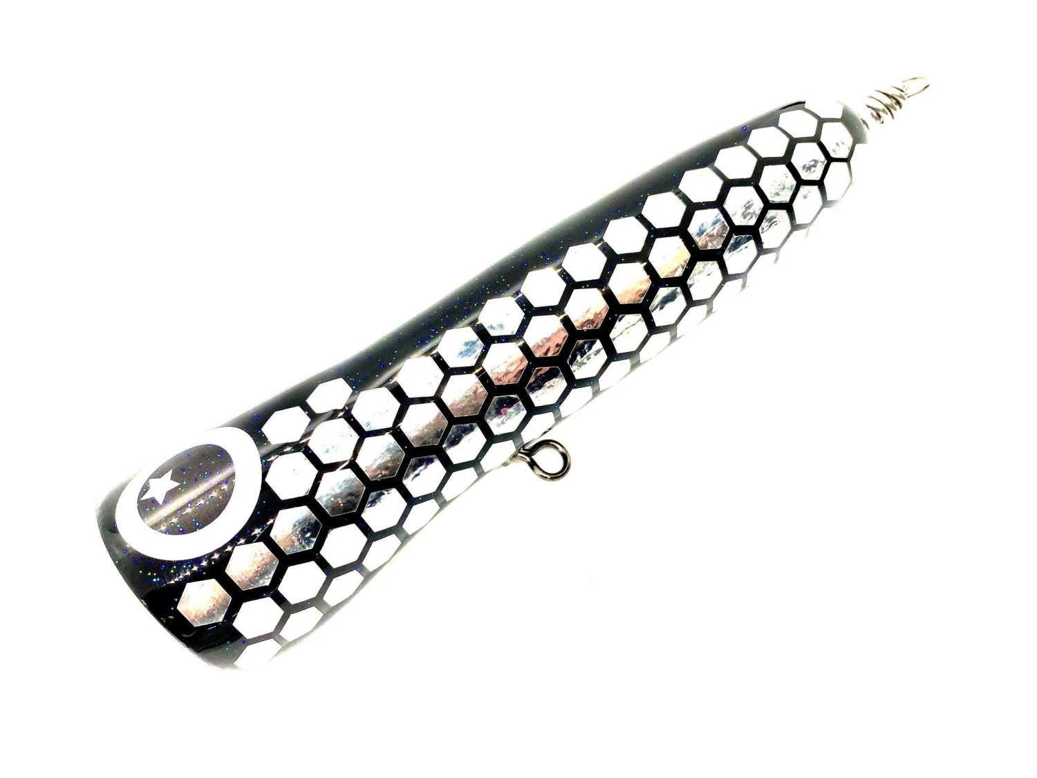 Handmade italian PE8 to 10 popper of 18cm x 155g. Perfect for tuna and gt fishing. Glide lures are made of composite materials, as a surfboard, with a lightweight core material and an outer reinforced with matrix resin and fibers (glass, carbon, kevlar, titanium hybrid). The lamination of reinforcement provides unrivaled resistance, the interior materials give incredible buoyancy and a reactive lifelike action to the lures.
